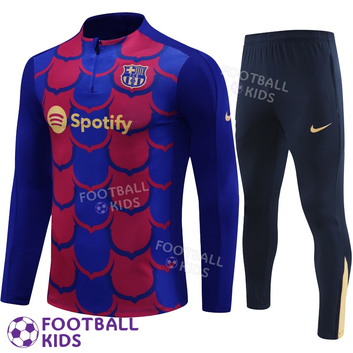 Этот предматчевый костюм для футбола – идеальный выбор для юных поклонников Барселоны которые хотят выделяться из толпы и демонстрировать свою поддержку клубу. Эффектный градиент сине-гранатовых цветов на кофте натхненный клубными традициями в сочетании с темно-синими рукавами и брюками создает яркий и динамичный образ. Позвольте вашему ребенку почувствовать себя частью большой футбольной семьи надев этот особенный костюм. Такой подарок фанату футбола вдохновит его на новые спортивные свершения!