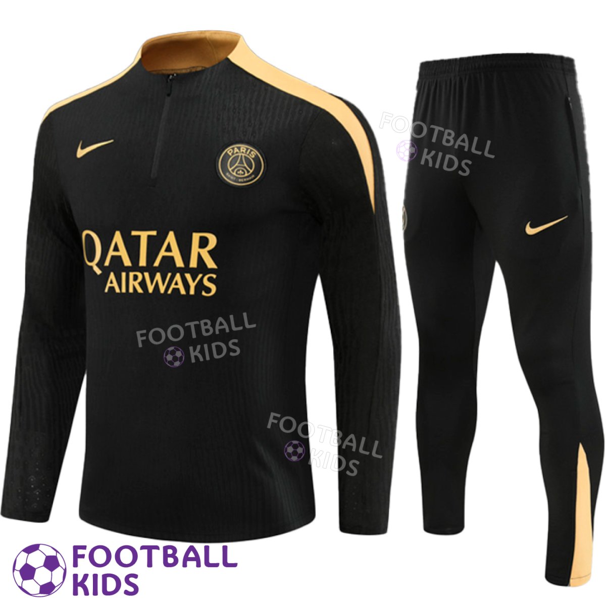 Ваш юный футболист мечтает об изяществе на поле, как звезды ПСЖ? Подарите ему возможность почувствовать себя частью легендарного клуба с новым тренировочным костюмом PSG Black/Gold Nike 2024-2025 для детей! Этот костюм футбольный для детей – это не просто спортивная одежда, это выражение стиля, уверенности и стремления к победам. Это отличный подарок футболисту, который ценит элегантность.